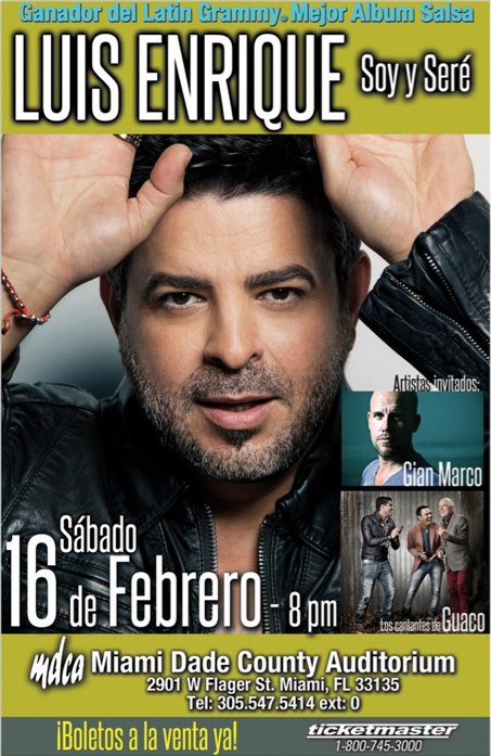 Ene. 28, 2013: El cantante nicaragüense Luis Enrique se presentará en Miami el próximo 16 de febrero con lo que da inicio a un año lleno de proyectos tras cerrar 2012 con un premio Grammy Latino en sus manos.