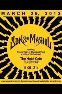 Mar. 8, 2013: Los SOM o Son of Mariel conformado por George Pajon (Black Eyed Peas) y el peruano Diego Val (The Voice) se preparan para dar un show de primera en The Hotel Cafe localizado en 1623 1/2 N. Cahuenga Blvd. en Los Angeles, California, el próximo viernes 29 de Marzo.