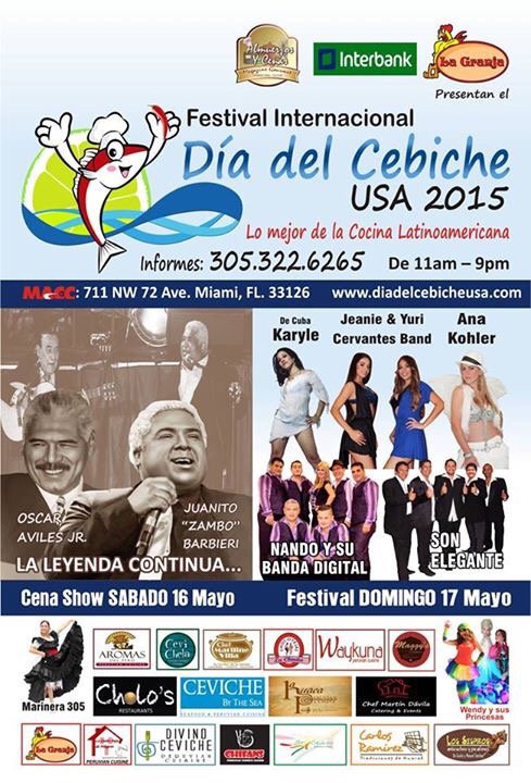TobienlaTele.com invita y convoca a sus lectores y espectadores del Sur de la Florida a ir este domingo al festival ‘Día del Cebiche’ en MACC (Miami Airport Convention Center) al costado del hotel Double Tree del aeropuerto de Miami, donde la comida y la música se unen para pasar un domingo de cebiche.