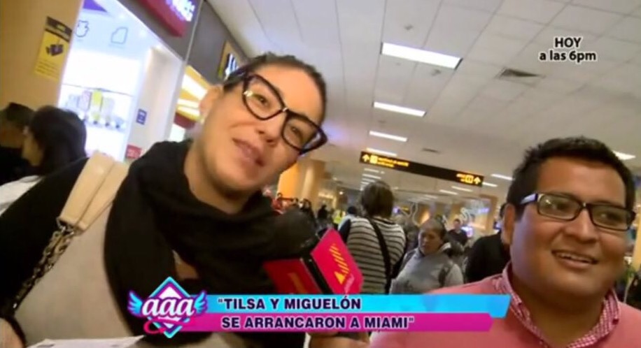 Como dice el dicho, “Piensa mal y acertarás.” El equipo del programa que siempre handa sorprendiendo a la farándula peruana ‘Amor Amor Amor’ abordó a Tilsa Lozano con su pareja Miguel Hidalgo en el aeropuerto de Lima, la cual anunció la Vengadora que viajaba a Miami, según ella decía para ir a comprar las cosas para la bebé que viene en camino.