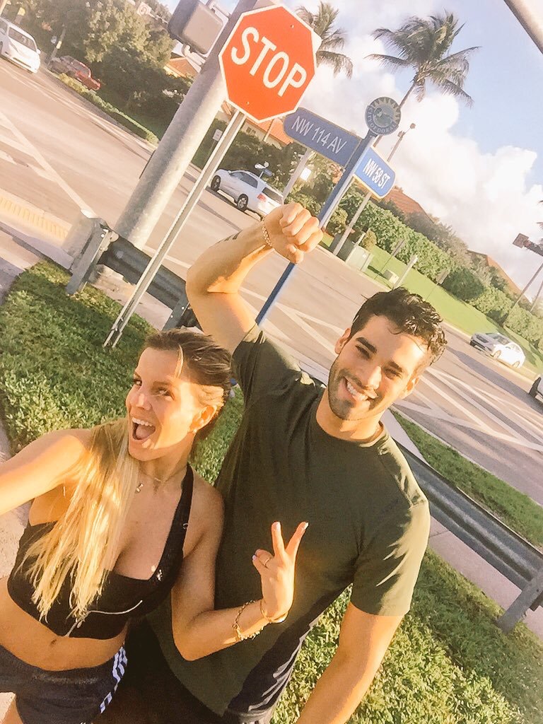 Pero esta foto no fue la única, la modelo peruana posteó en Twitter también unas imágenes del día anterior donde se vió que estaban trotando por las calles del Doral en Miami y en la pié de foto decía: “El 31 entrenando en Miami !! Preparándonos para nuevos retos juntos mi amor @GutyCarreraT 💚❤️”.