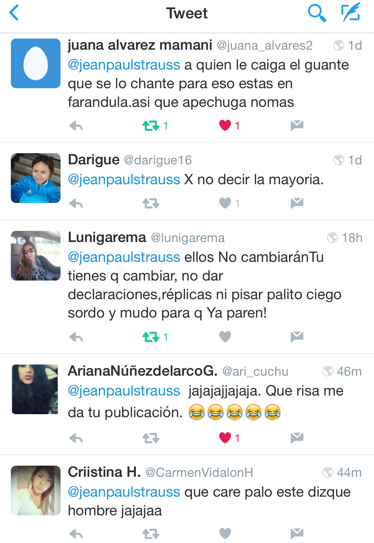 Jean Paul Strauss no aguantó y se expresó a través de Twitter en contra de los periodistas de espectáculos en su natal país, Perú.