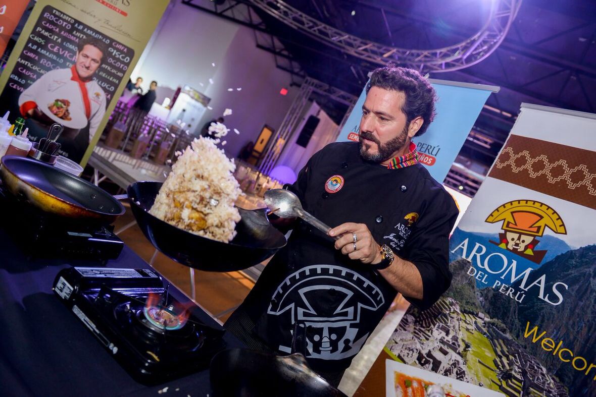El evento resaltó por el lado culinario las influencias de las diversas culturas en la gastronomía peruana, que provienen principalmente de la cocina italiana, china, japonesa y africana, donde los asistentes pudieron degustar platos fríos y calientes de fusiones peruanas de la más alta calidad gracias al restaurante Aromas del Perú.