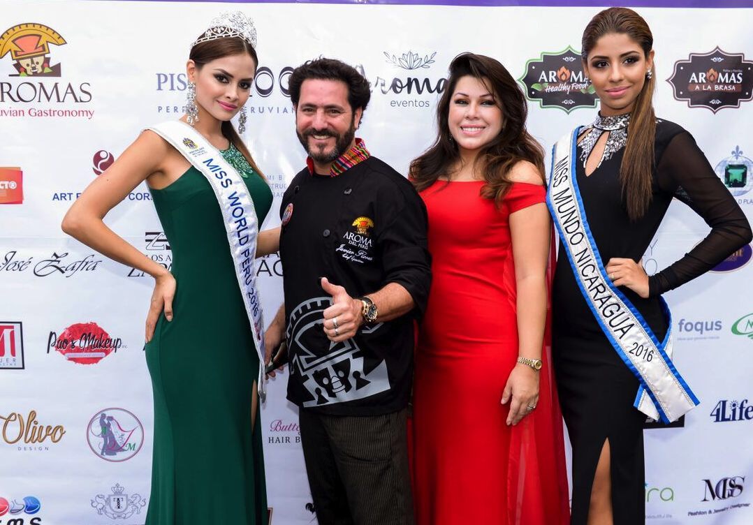 Pierna-JavierPierina Wong Miss Mundo Peru 2016, Chef Javier Florez de ‘Aromas del Perú’, Marita Astete Directora ‘Fundación Aromas’ y Maria Laura Ramirez Miss Mundo Nicaragua 2016 (Alexander Luna)