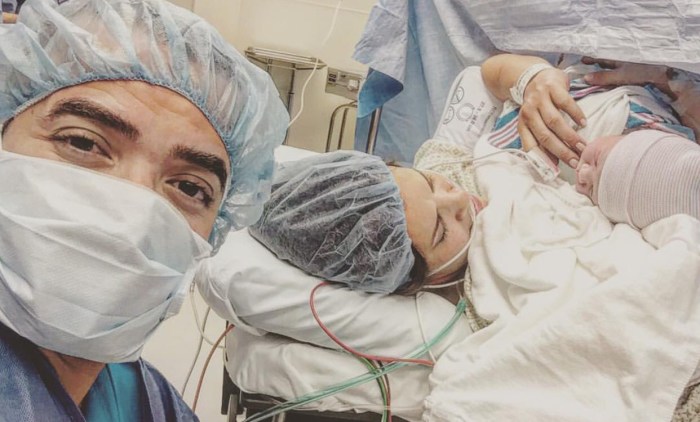 Nacho vuelve a publicar dos fotos donde se le ve a su recien nacido acurrucado en los brazos con su mamá, donde en la pie de foto anuncia: “Bebé en el pecho de su mamá” y la otra instantánea se lee “Este no lleva ni una hora de haber nacido y ya empezó con la mala conducta.”