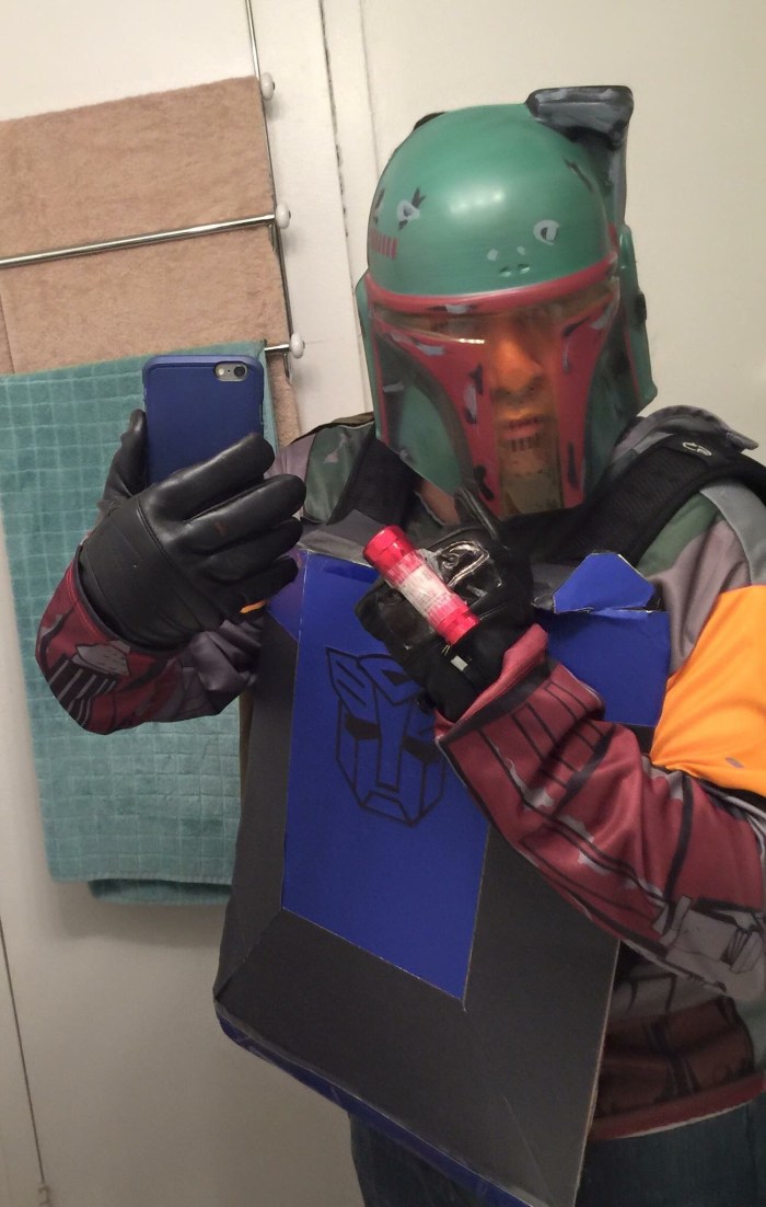 Aunque en el 2015 nunca salí a mostrar el disfraz, en el 2016 me disfracé dos veces. Bobafett en la mañana y Drácula por la noche.