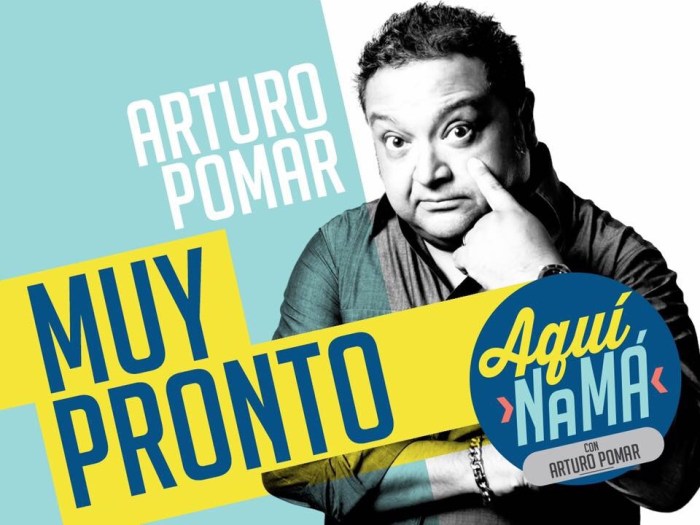 Los primerios episodios se transmitían únicamente por la página de Facebook de Aquí NaMá. Y ahora tendrá un espacio en el canal por cable Sur Perú a partir del 1 de octubre a las 5:30 pm (hora de Miami). Así anunció Arturo Pomar a través del Facebook de su programa.